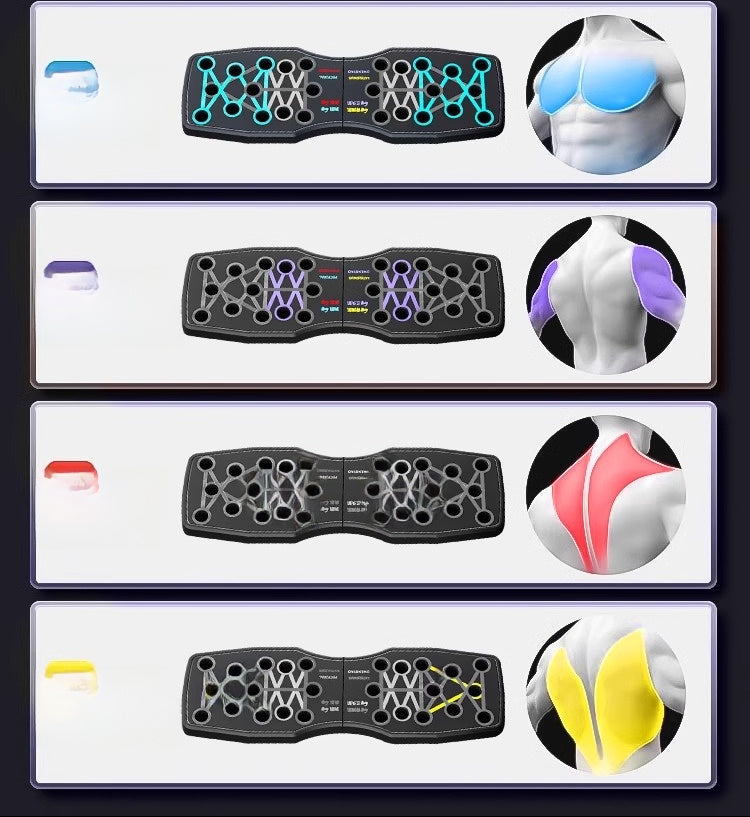 Sculptez votre corps, où que vous soyez. Cet équipement 2-en-1 pour abdominaux et pompes est conçu pour ceux qui veulent repousser leurs limites et développer un physique athlétique sans dépendre d’une salle de sport. Polyvalent, compact et redoutablement efficace, il vous permet de travailler les abdos, les bras, les épaules, le dos et la poitrine à l’aide d’un seul outil.
